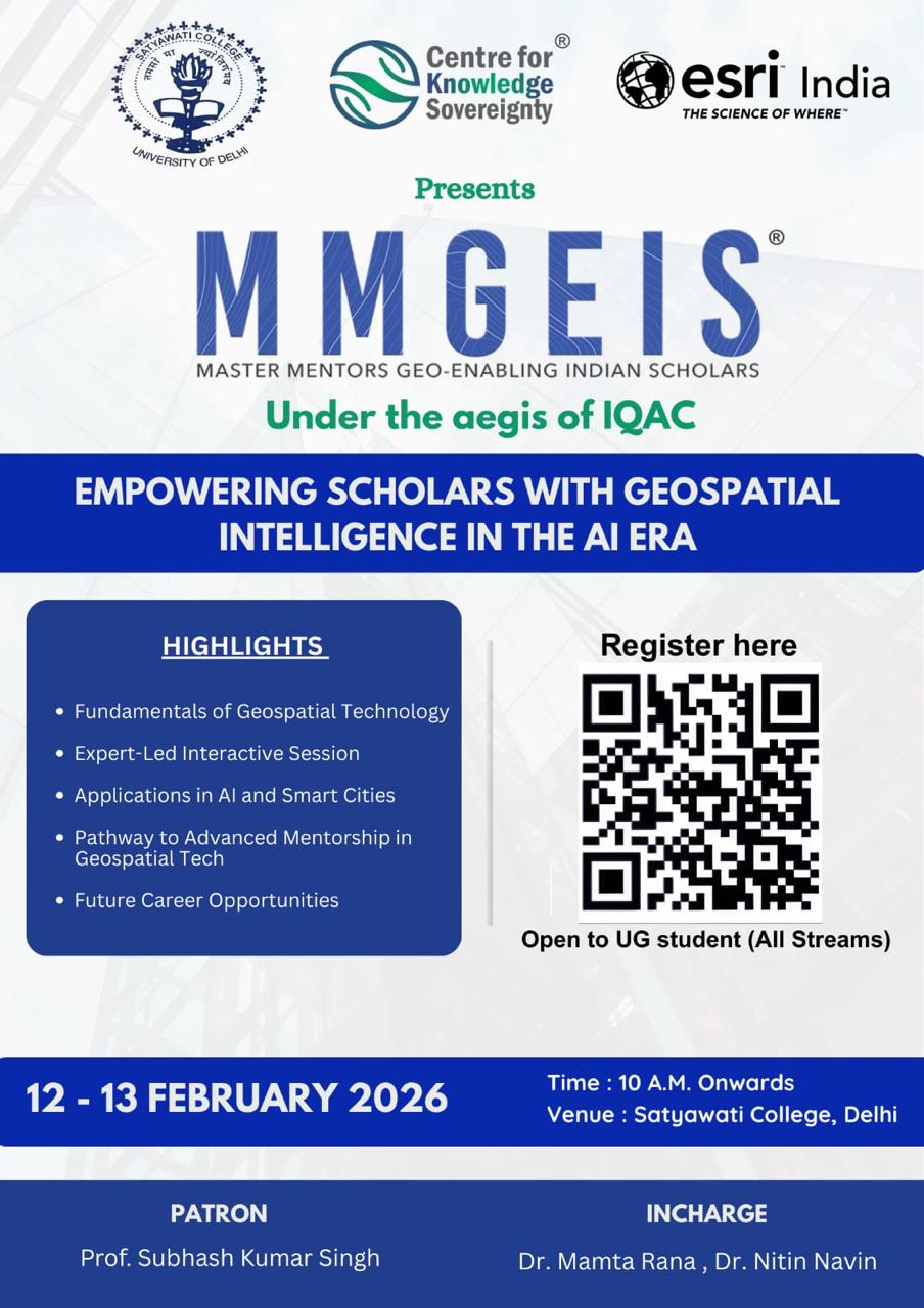 It is an honor and a privilege to lead Satyawati College, an esteemed institution that has consistently upheld the values of academic excellence, inclusivity, and holistic development. Since its inception in 1972, the college has made remarkable strides in infrastructure, student engagement, and educational standards...................