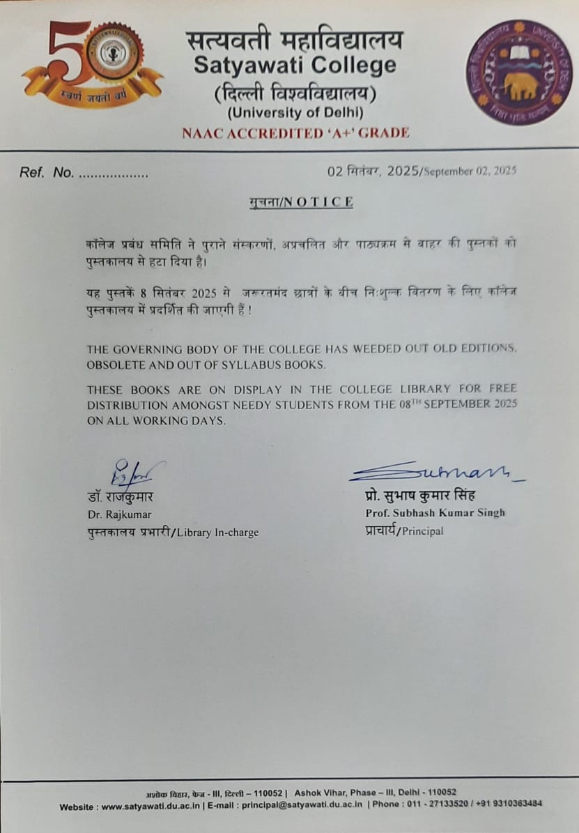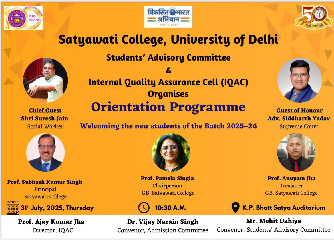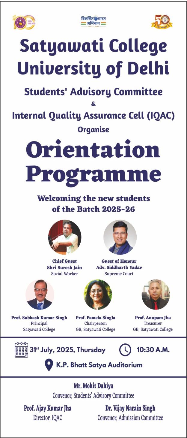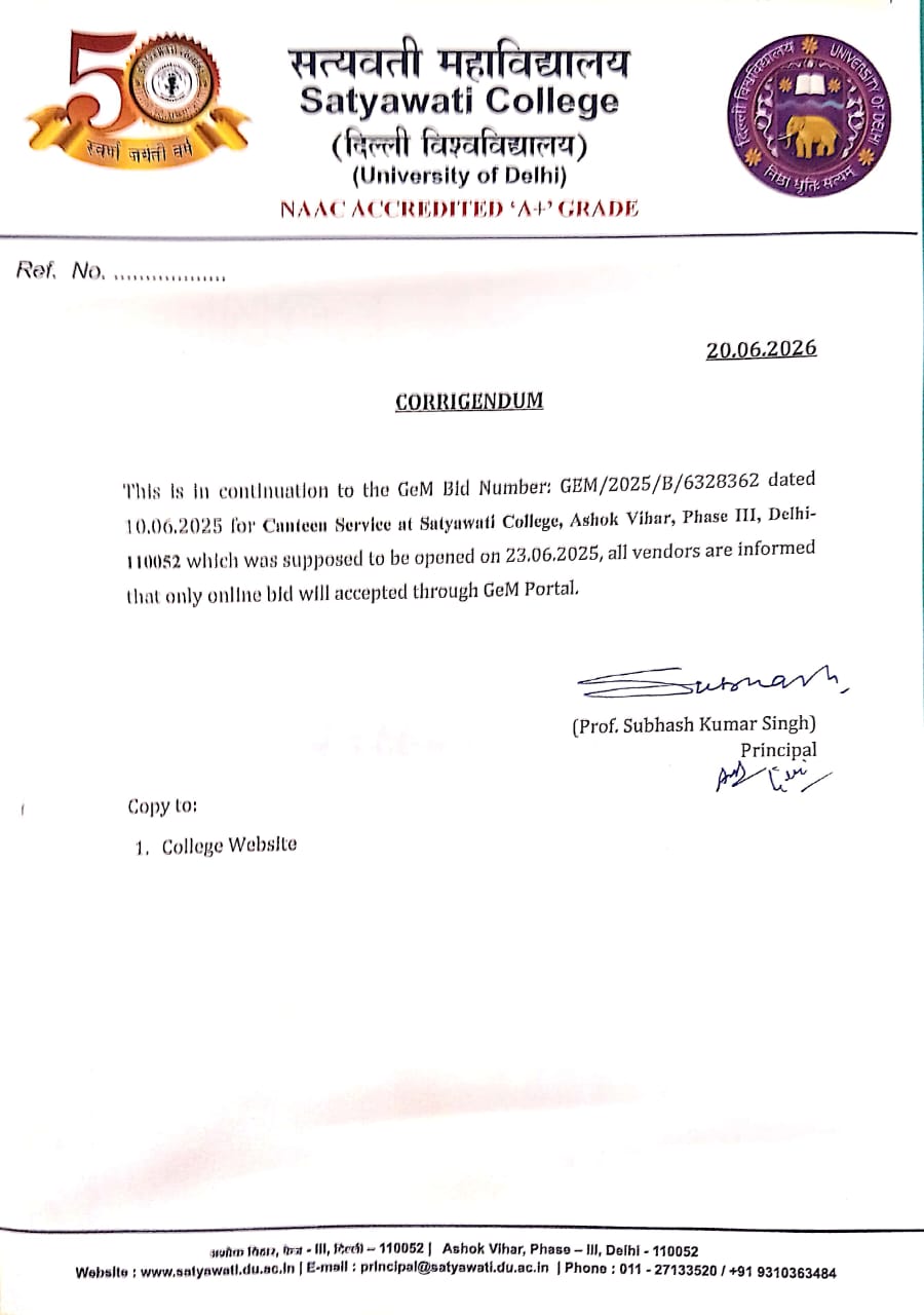 It is an honor and a privilege to lead Satyawati College, an esteemed institution that has consistently upheld the values of academic excellence, inclusivity, and holistic development. Since its inception in 1972, the college has made remarkable strides in infrastructure, student engagement, and educational standards...................