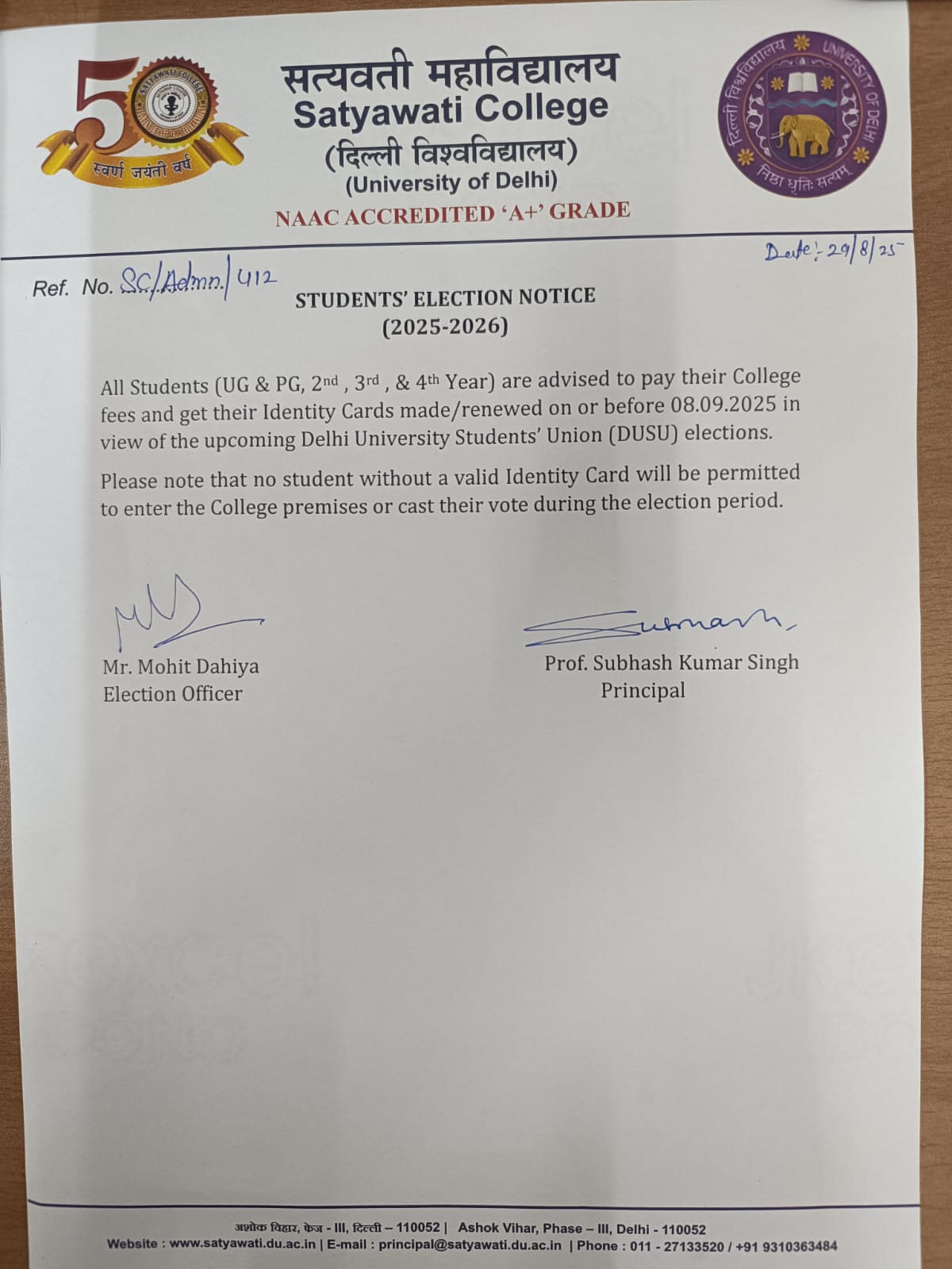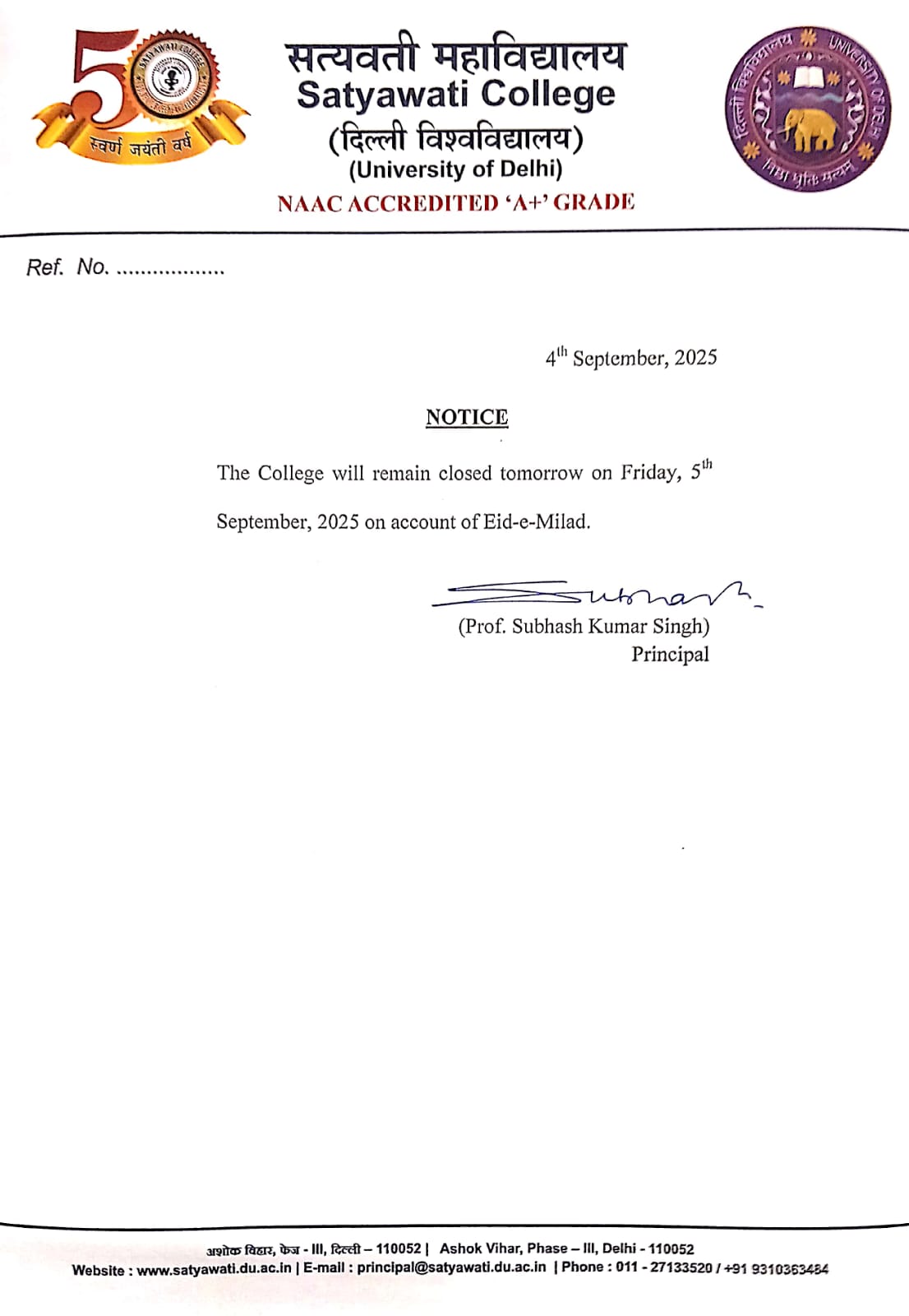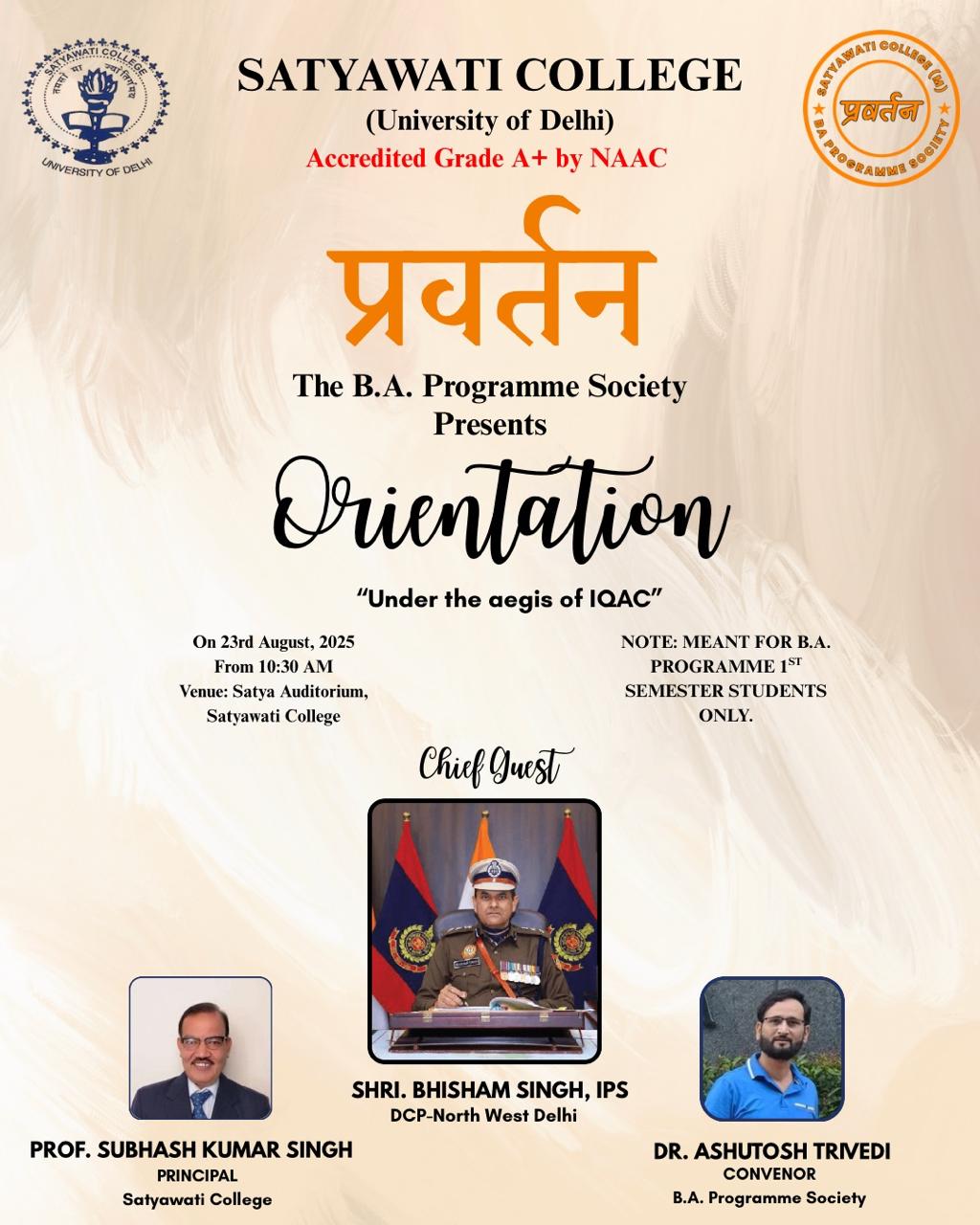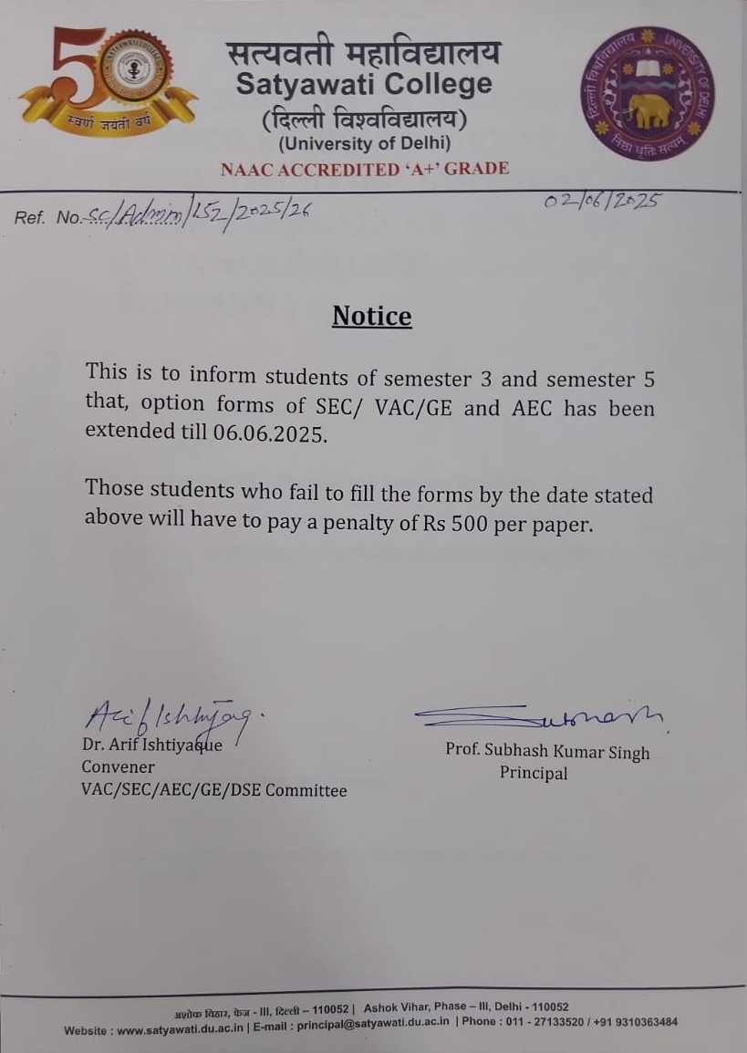 It is an honor and a privilege to lead Satyawati College, an esteemed institution that has consistently upheld the values of academic excellence, inclusivity, and holistic development. Since its inception in 1972, the college has made remarkable strides in infrastructure, student engagement, and educational standards...................